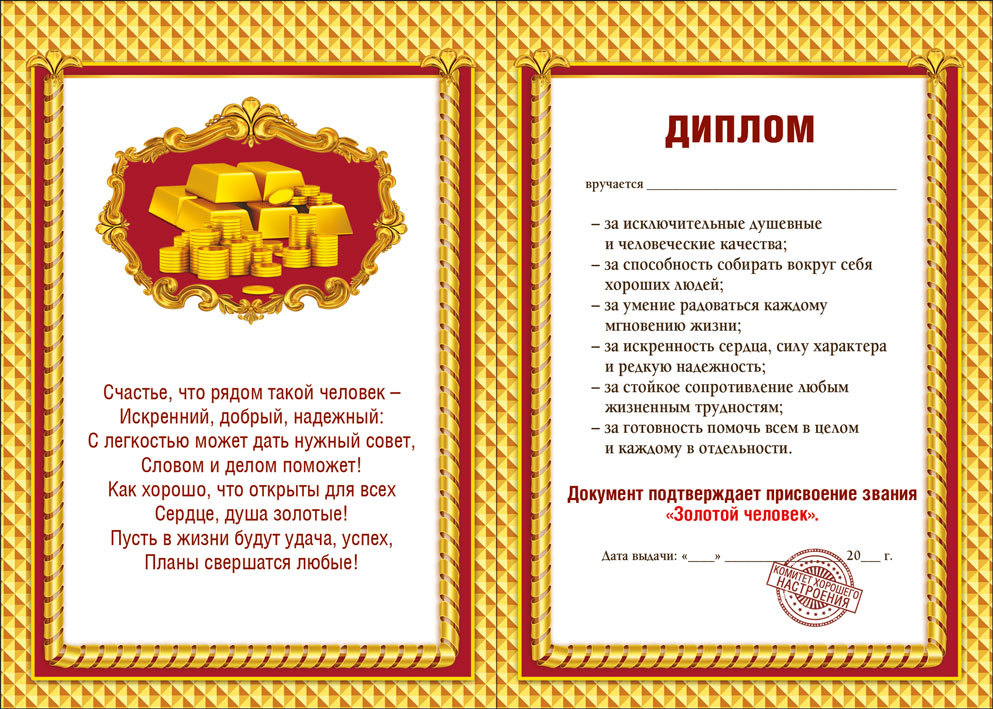 51.52.375 Диплом золотого человека в твердом переплете. Формат А6