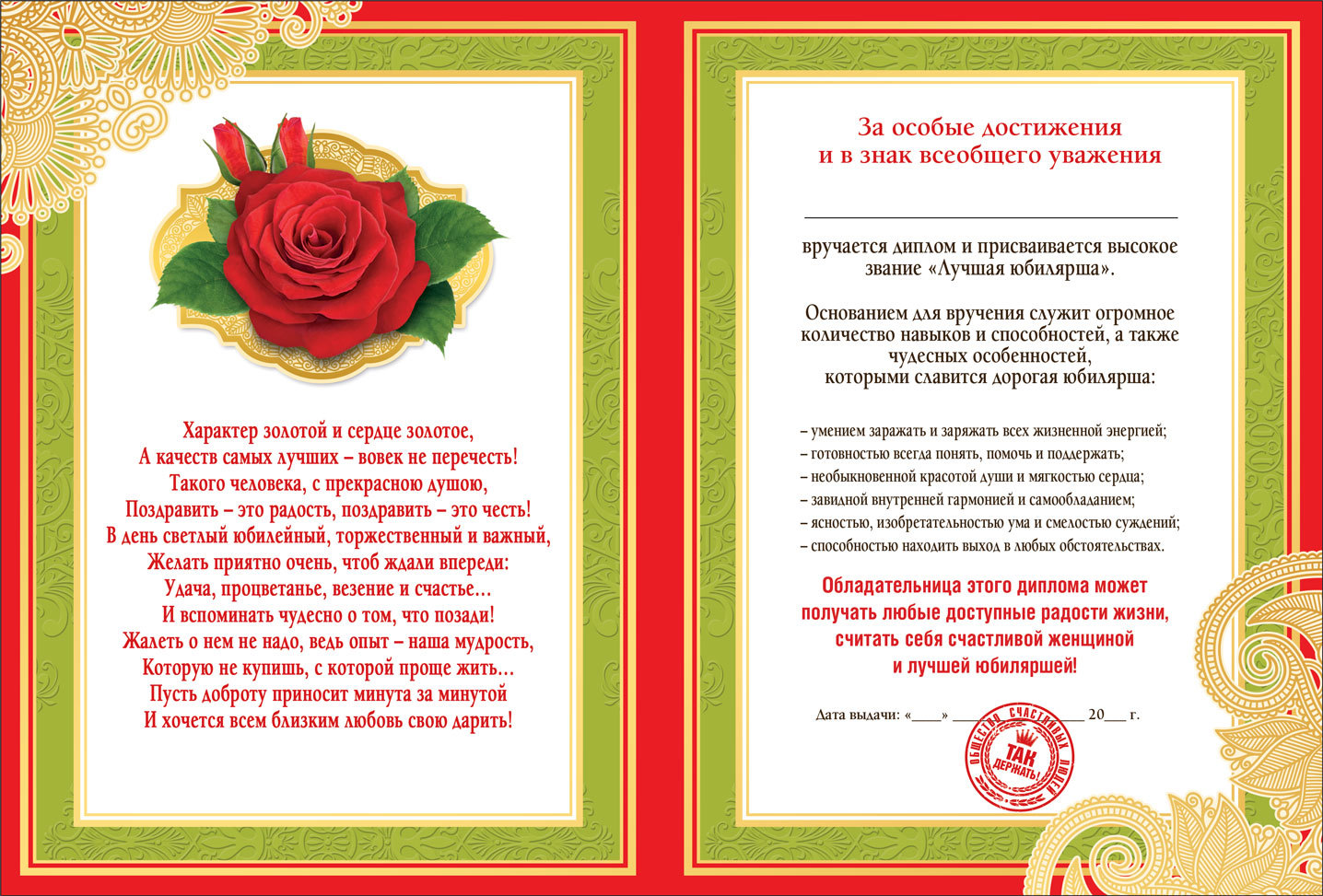 51.52.406 Диплом счастливой юбилярши в твердом переплете.Формат А5