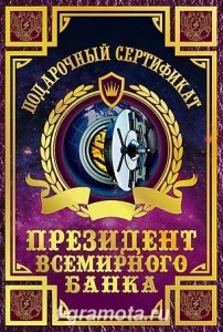 ФГ SPL000003 Подарочный сертификат "Президент всемирного банка" в твердом переплете.Формат А6