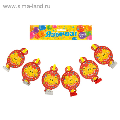 1030722 Набор язычков-гудков "Поздравляю! Смайлики" (6 шт.)