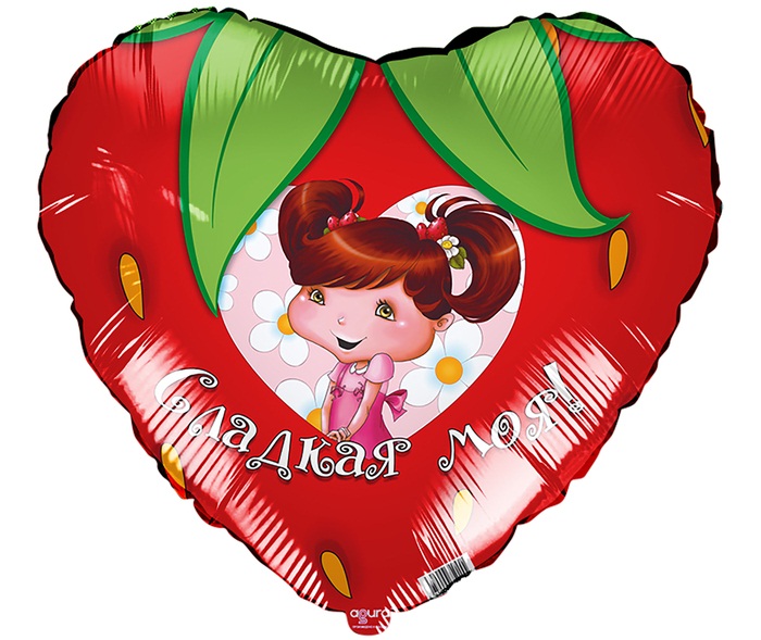 2952570 Фольгированное сердце "Сладкая моя! Девочка клубничка" Диаметр 48 см.