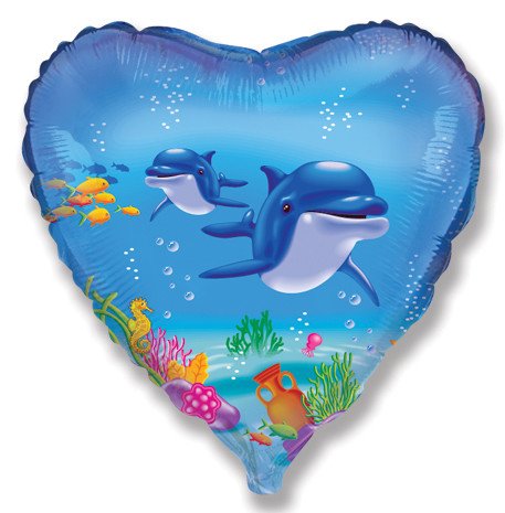 1260903 (1202-0427) Фольгированное сердце "Счастливые дельфины" Диаметр 48 см.