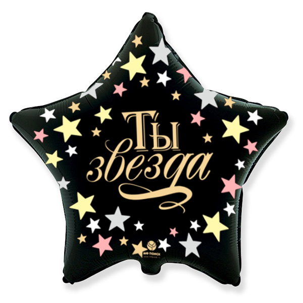 ПБ 6057541 Фольгированная звезда черная "Ты звезда!" D 45 см. (с гелием)