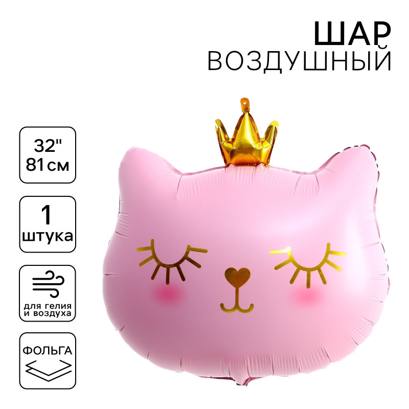 7310203 Фольгированная фигура "Розовая голова Кошечки с короной" Высота 81 см.