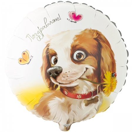 ВЗ 1202-3251 Фольгированный круг "Поздравляю! Собачка с цветком" D 45 см. (с гелием)