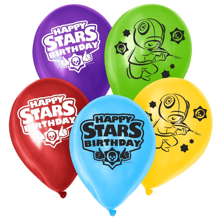 7085899 Шарик 1-сторонний "Happy Birthday Stars (Бравл Старс)" D 30 см. (с гелием)