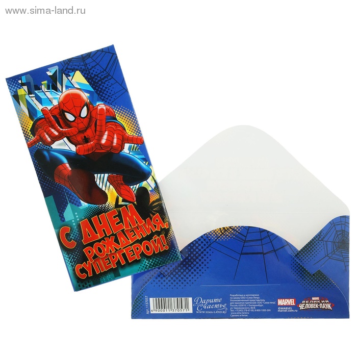1137057 Конверт-открытка для денег "С Днем рождения! Человек паук"
