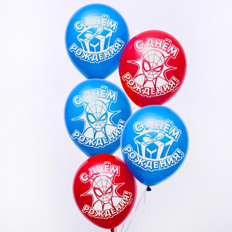 5798019 Шарик 1-сторонний "С Днем рождения! Человек паук" D 30 см. Красный и голубой (с гелием)