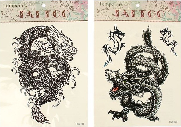 1202454 Татуировка на тело "Черный дракон" Размер 21,5 * 30,5 см. Рисунок микс