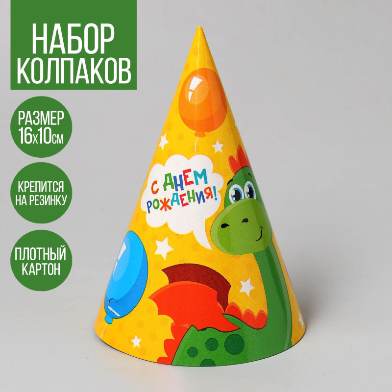 2844409 Набор колпаков "С Днем рождения! Динозаврик" Высота 15 см. (10 шт.)