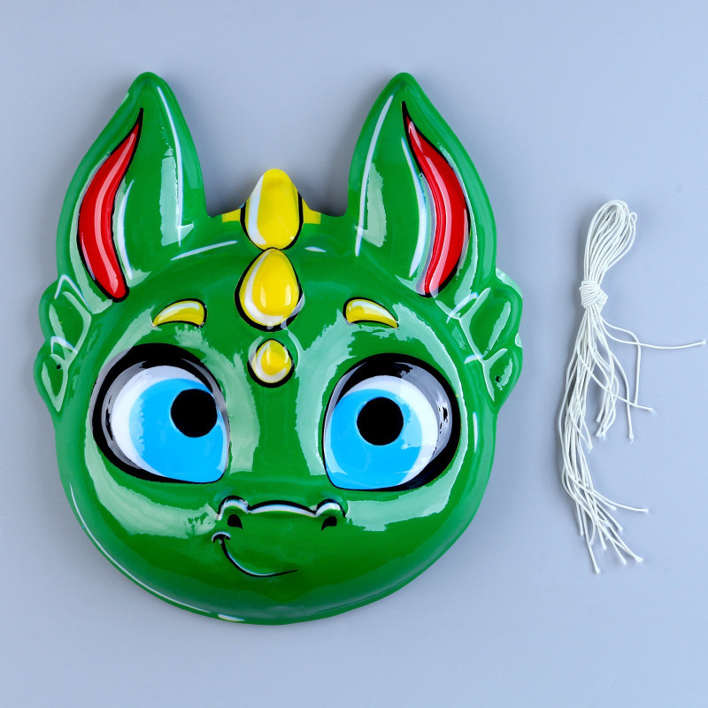 9561325 Пластмассовая маска "Зеленый дракон - мальчик" на резинке