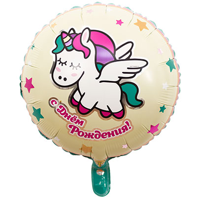 ВЗ 1202-2911 Фольгированный круг "С Днем рождения! Единорог спящий" D 45 см. (с гелием)