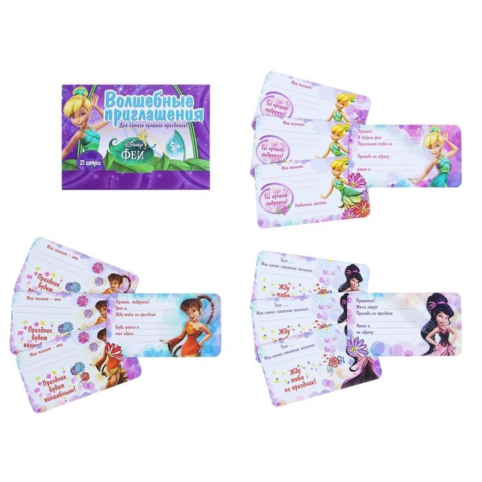 1170939 Приглашение малое 2-стороннее "Феи" Размер 9 * 5 см.Рисунок ассорти