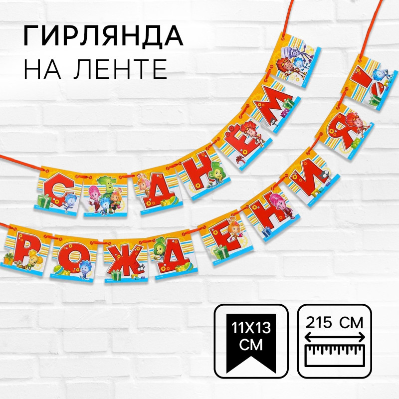 4245409 Гирлянда на ленте "С Днем рождения! Фиксики" Длина 215 см.