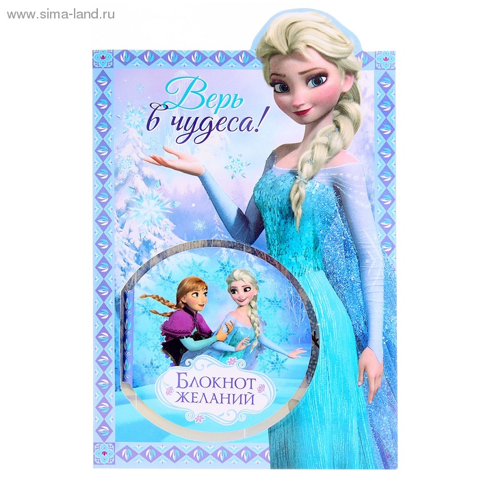 1154289 Открытка с блокнотом " Холодное сердце.Верь в чудеса!". Размер 11,5 * 15 см.