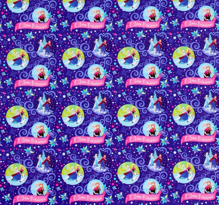 2586455 (2390646) Глянцевая упаковочная бумага "С Днем рождения! Холодное сердце" Размер 70*100 см