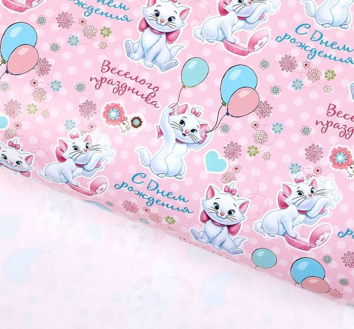1302005 Глянцевая упаковочная бумага "С Днем рождения! Кошка Мэри" Размер 70*100 см.