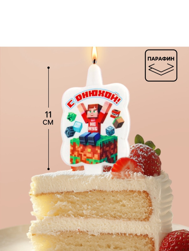 10981702 (3902) Свеча в торт "С Днюхой! Майнкрафт" Высота 11 см.