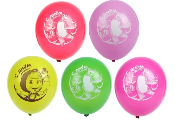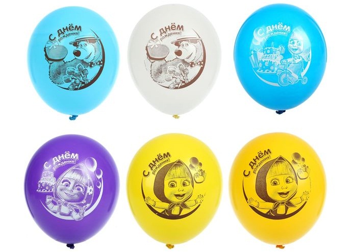 2334455 (1103-1530) Шарик латексный "С Днем рождения! Маша и Медведь" Диаметр 30 см.Цвета ассорти