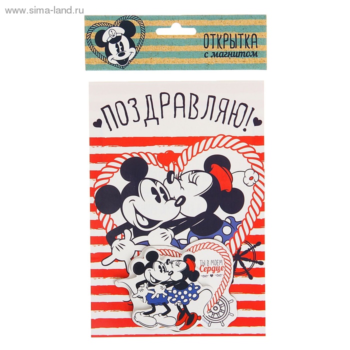 1231108 Открытка "Ты в моем сердце. Микки Маус и его друзья" с полимерным магнитом