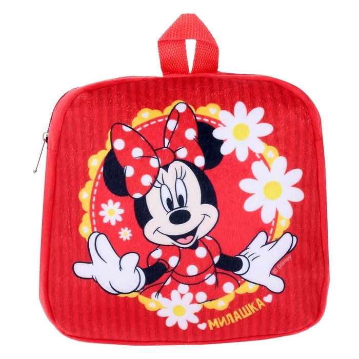 1745527 Рюкзак красный меховой "Минни Маус.Милашка" Размер 24,5 * 24,5 см.
