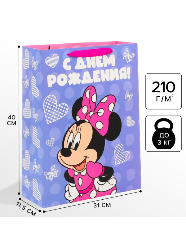 7153509 Пакет фиолетовый "Минни Маус: С Днем рождения!" Размер 31 х 40 см. Вертикальный