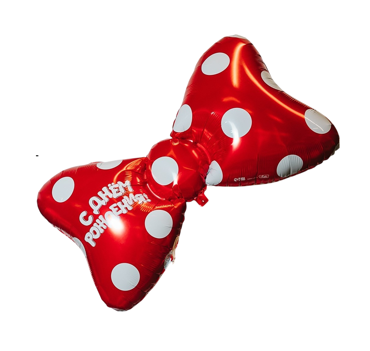 9364499 Большой красный фольгированный бант в белый горох "С Днем рождения!" Длина 60 см.