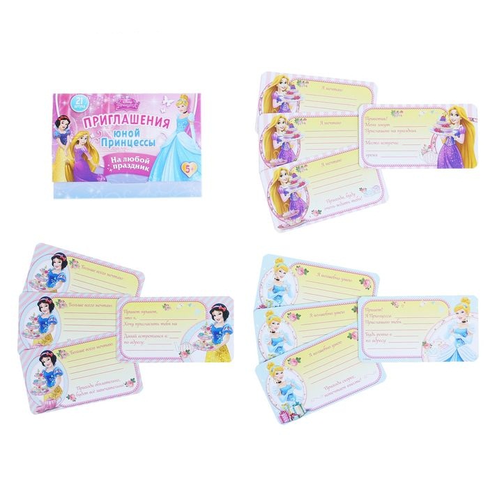 1170940 Приглашение малое 2-стороннее "Принцессы" Размер 9 * 5 см.Рисунок ассорти
