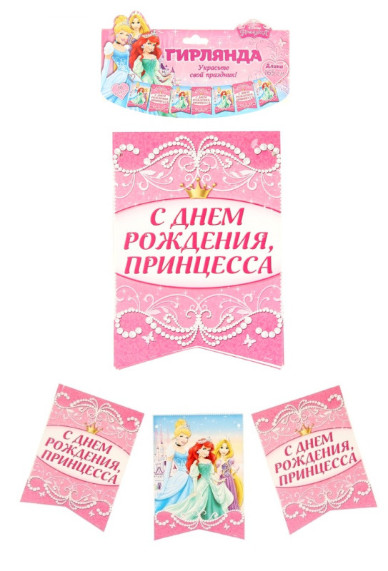 1282206 Гирлянда - вымпел "С Днем рождения! Принцессы" Длина 165 см.