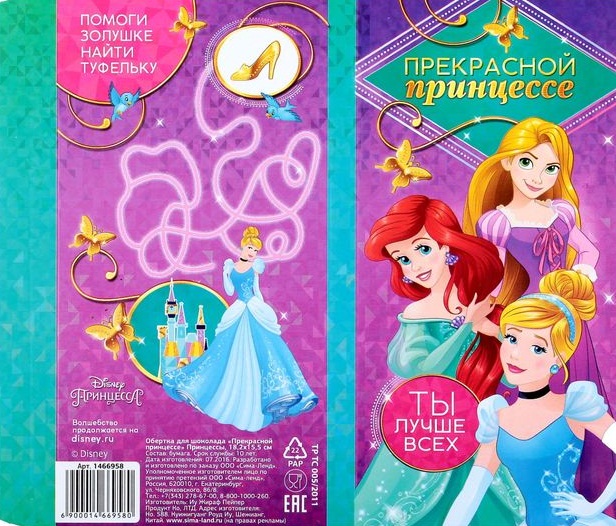 1466958 Мягкая обложка для шоколада "Прекрасной принцессе"