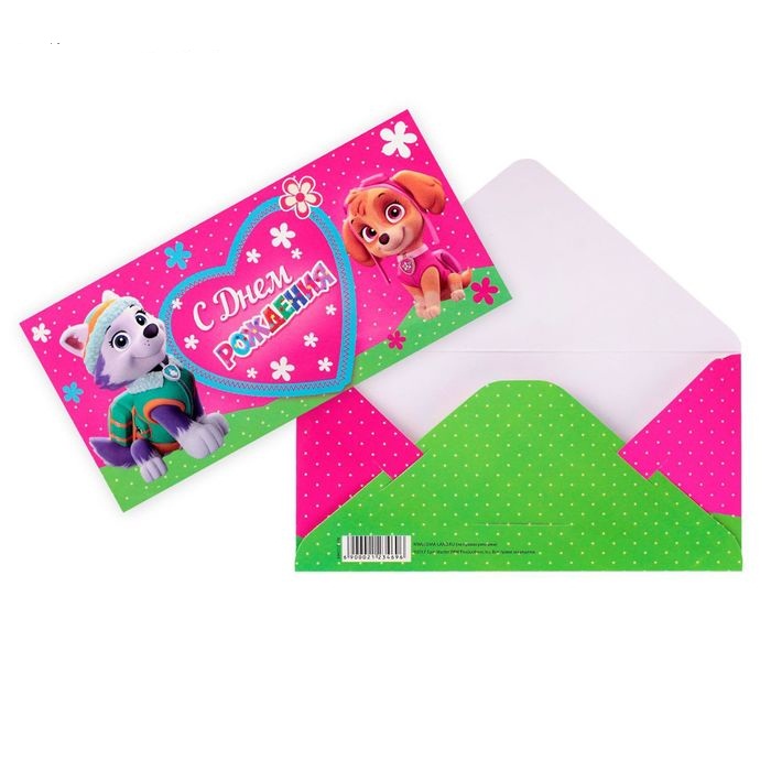 2123469 Конверт для денег "С Днем рождения! Скай и Эверест"