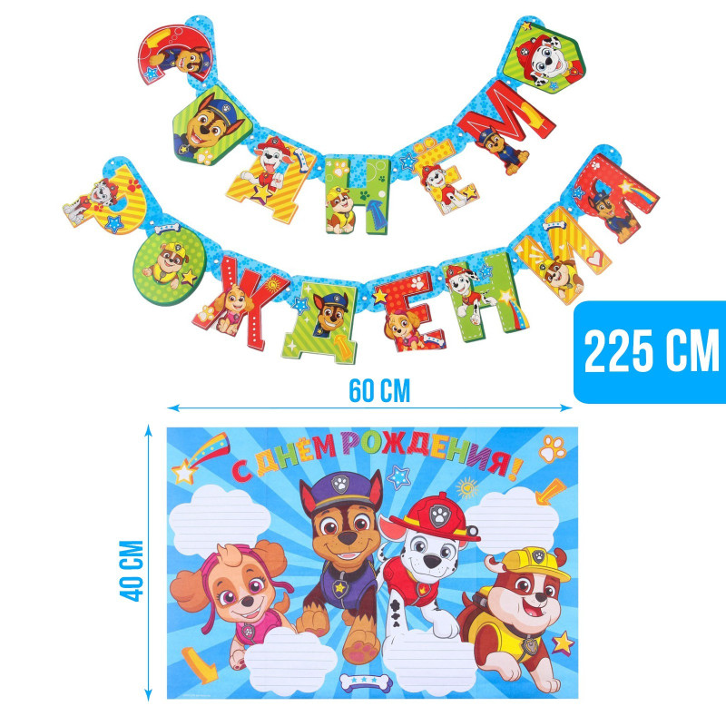 9075257 Набор "Щенячий патруль": Гирлянда длина 225 см. + плакат 60 х 40 см.