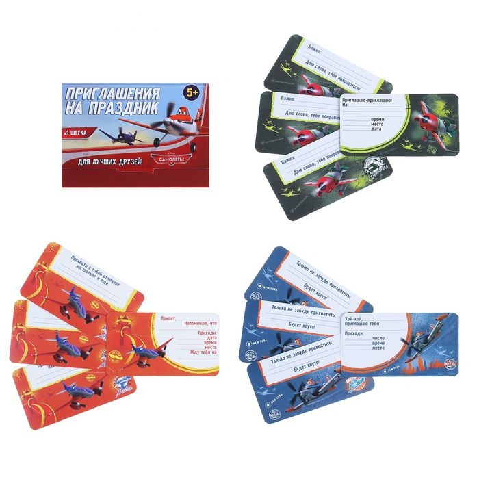1170944 Приглашение малое 2-стороннее "Самолеты" Размер 9 * 5 см.Рисунок ассорти
