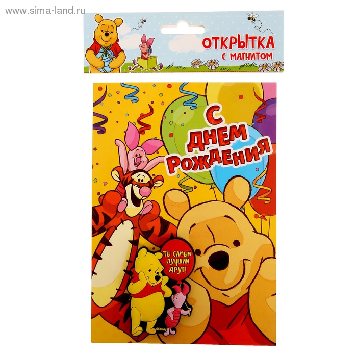 1184971 Открытка "Ты самый лучший друг.Медвежонок Винни и его друзья" с резиновым магнитом