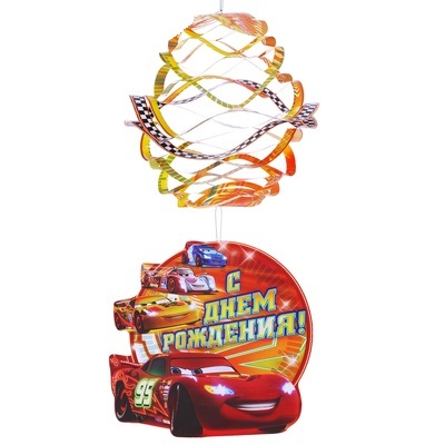 1130231 Подвеска-фонарик "С Днем рождения! Тачки" Диаметр 21 см.