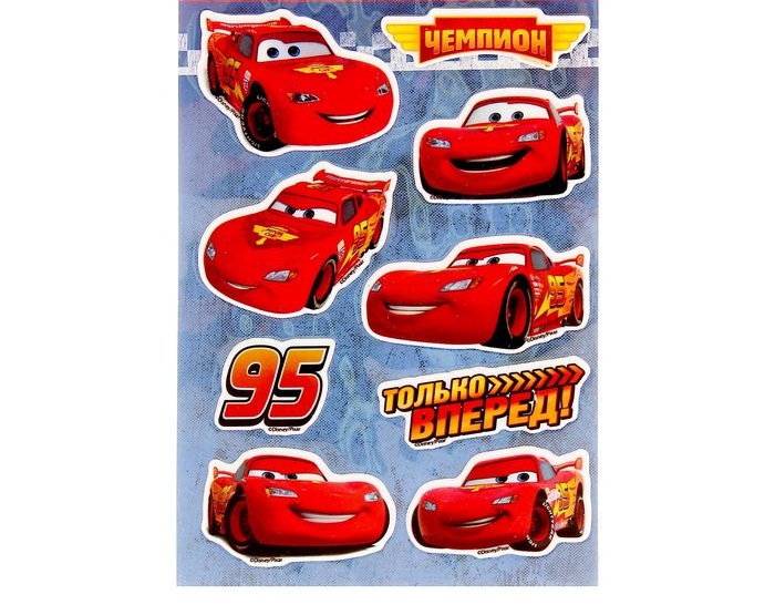 1166784 Набор объемных наклеек "Чемпион! Только вперед! Тачки" (лист) Размер 11 * 15 см.
