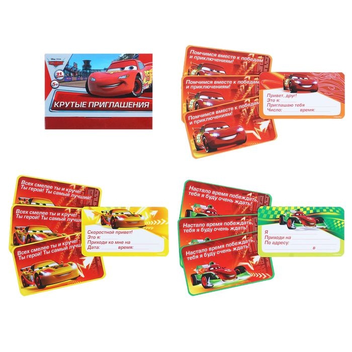 1170945 Приглашение малое 2-стороннее "Тачки" Размер 9 * 5 см.Рисунок ассорти