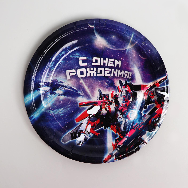 7105126/1 Набор темно синих тарелок "С Днем рождения! Трансформеры" D 18 см. (6 шт.)