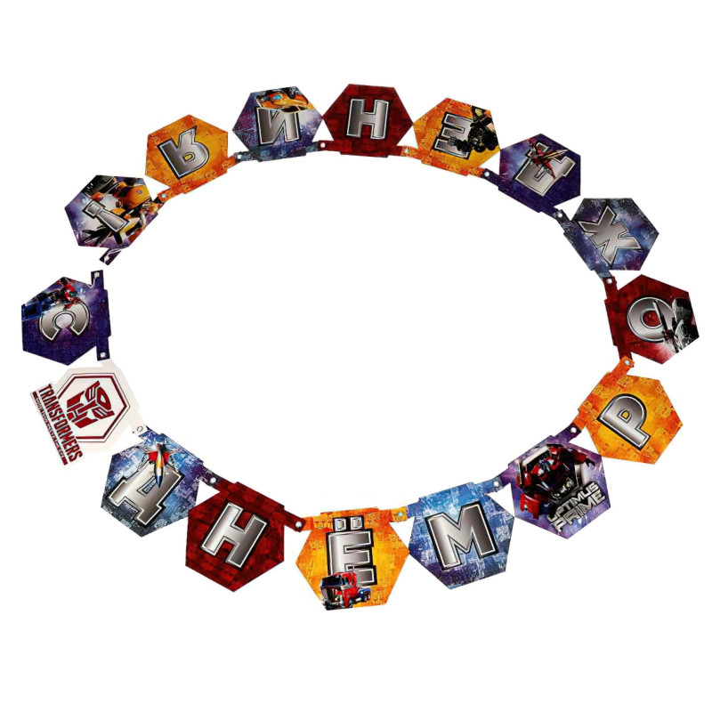 9335486 Гирлянда на люверсах "С Днем рождения! Трансформеры" Длина 210 см.