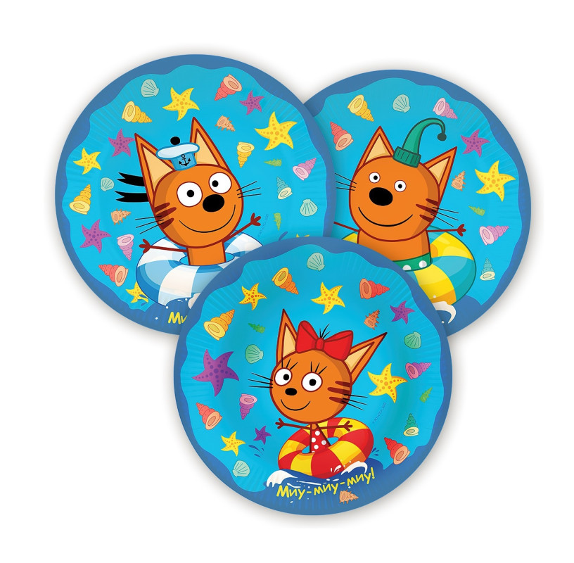 9295718 (ДБ 6014973) Набор голубых тарелок "Три кота" (6 шт.) D 18 см.