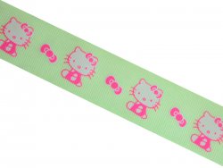 108000026 Репсовая лента Hello Kitti на салатовом фоне. Ширина 2,5 см.