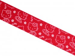 108000084 Репсовая лента Hello Kitti на красном фоне. Ширина 2,5 см.