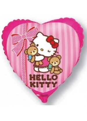 ФМ 201693 Розовое фольгированное сердце "Hello Kitty. Мишки" Диаметр 45 см. Испания