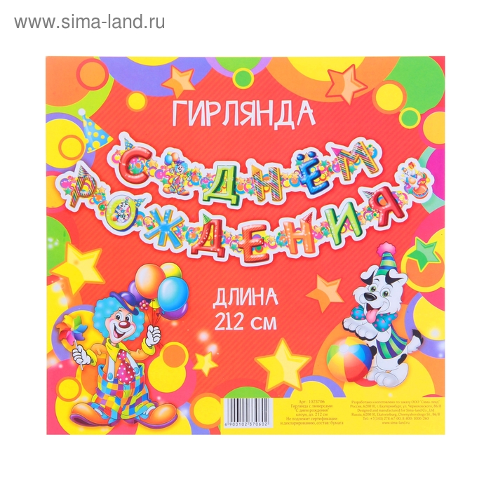 1023706 Гирлянда "С Днем рождения.Клоун" Длина 212 см.