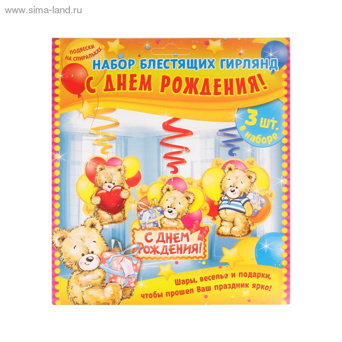1062360 Набор блестящих гирлянд - спиралей " С Днем рождения! Мишка" (3 шт.)