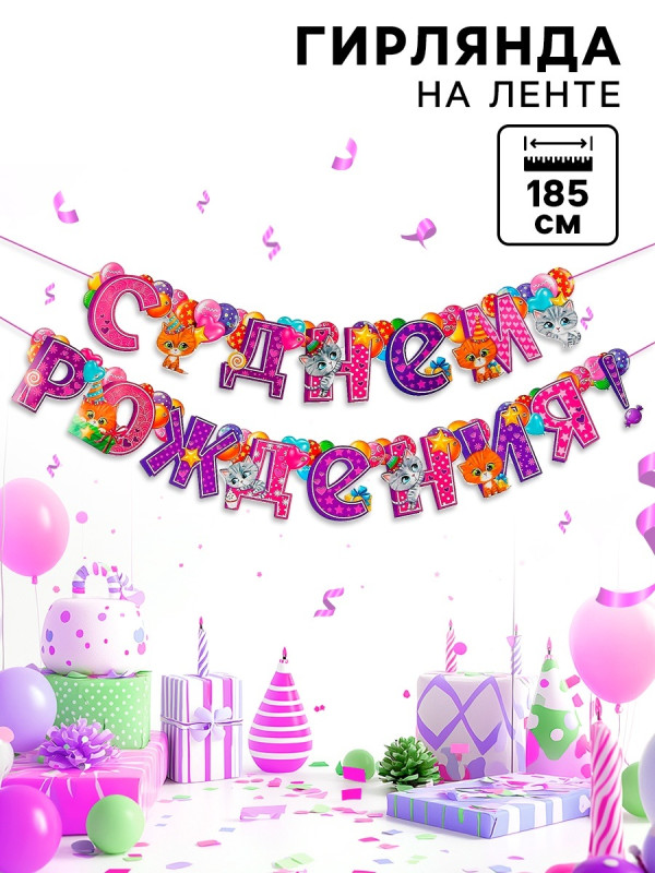 2818726 Гирлянда на люверсах "С Днем рождения! Котик" Длина 185 см.