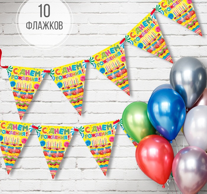 2853974 Гирлянда - вымпел желтая "С Днем рождения!" на ленте.Длина 300 см.