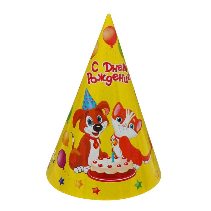 1252357 Набор колпаков "С Днем рождения! Кошка и щенок" ( 6 шт.)
