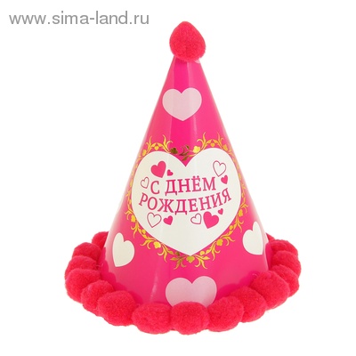 850174 Колпак с помпонами "С Днем рождения!.Сердечки" малиновый