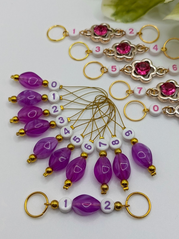 СИР-15-2026/ЗЛ Сиреневый большой набор маркеров для вязания (15 шт.) + счетчик рядов